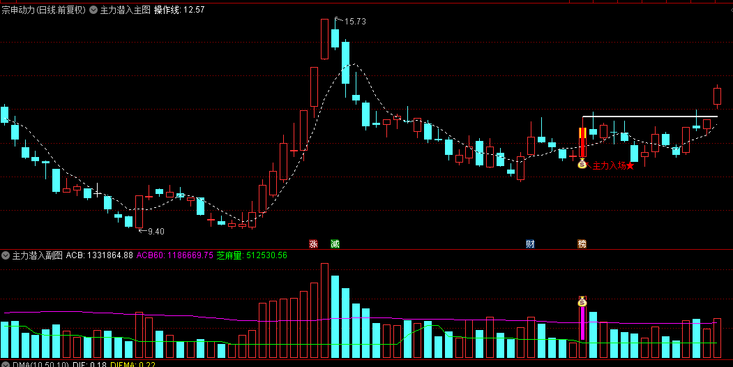在股市的博弈中,主力的动向无疑是决定股价走势的关键因素之一。而“主力潜入”指标正是通过捕捉成交量的异常变化来揭示主力的动向。具体而言,当某只个股的成交量突然放大至前三日平均成交量的三倍以上时,这往往被视为一个强烈的异动信号,预示着主力资金可能正在悄然入场。这一信号不仅为我们提供了选股的重要依据,更为我们捕捉市场先机提供了宝贵的线索。