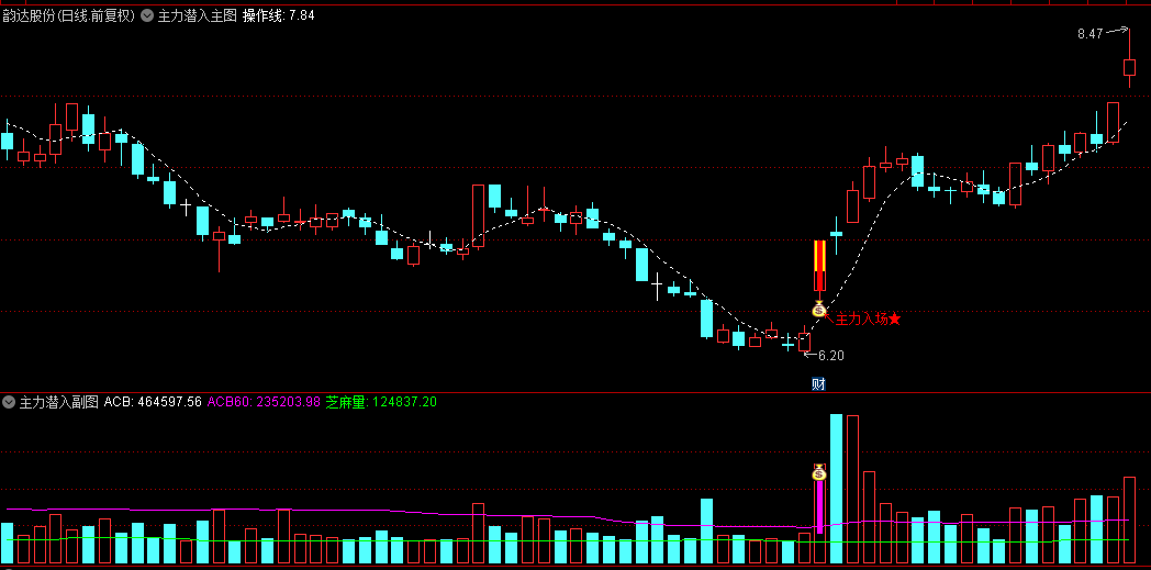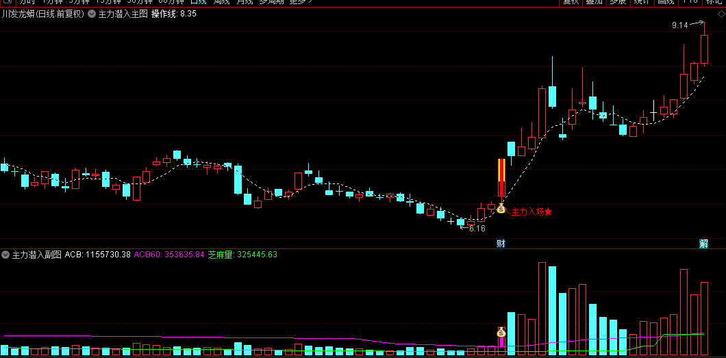 正是基于这一原理,我们编写了主力潜入主图/副图及选股指标。