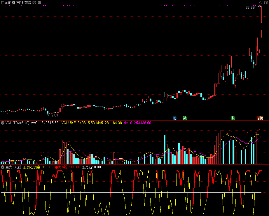 主力X线:IF(圣灵石资金>REF(圣灵石资金,3),圣灵石资金,DRAWNULL)COLORRED,LINETHICK3;