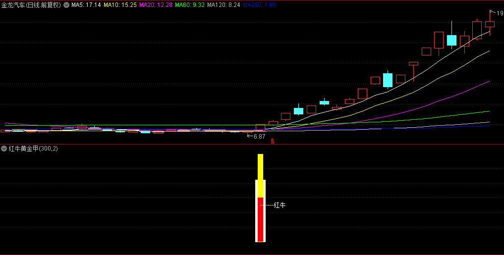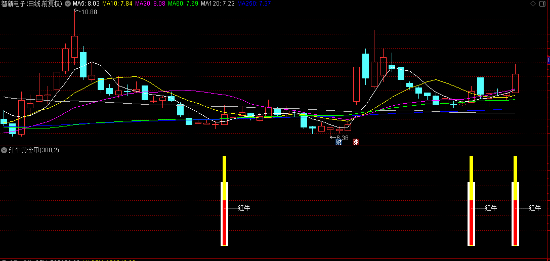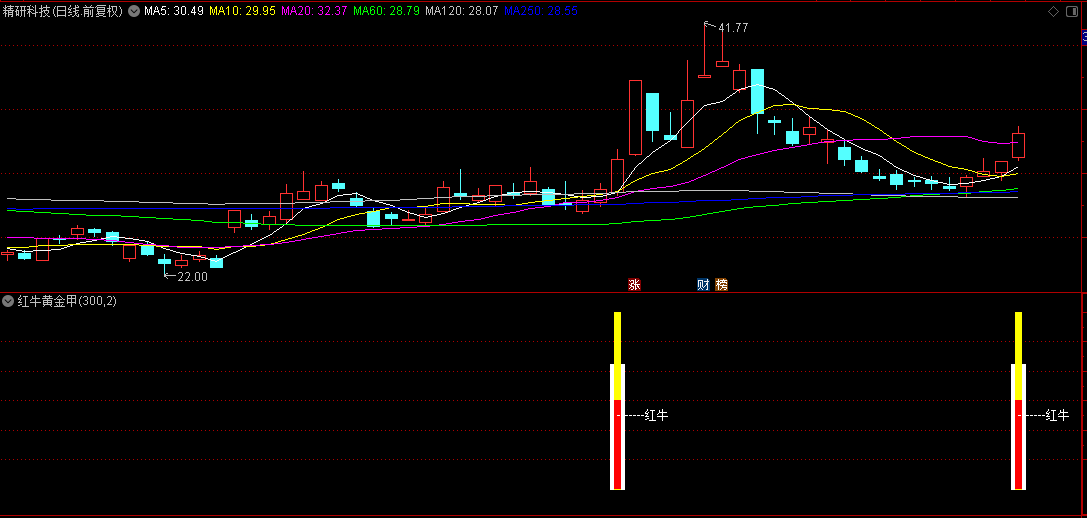 使用周期分钟周期,也可以日线周期,黄金甲T+分钟红牛信号,股价比爆!