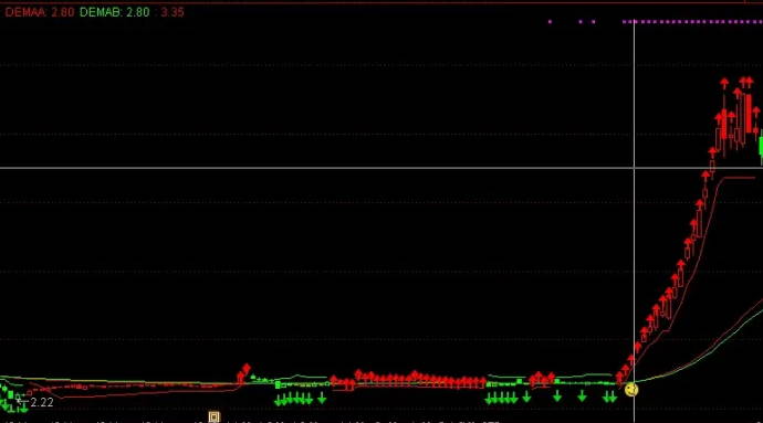 使用方法简洁而高效:在日线图上,当DEMA的双重指数红线优雅地穿越绿线形成金叉,且超级趋势指标同步向上时,这便是市场向我们发出的积极信号。