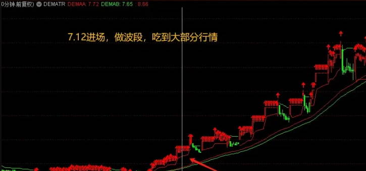 此时,若K线图上还伴有向上的箭头,加之交易量逐渐放大,那便是我们果断入场的最佳时机。