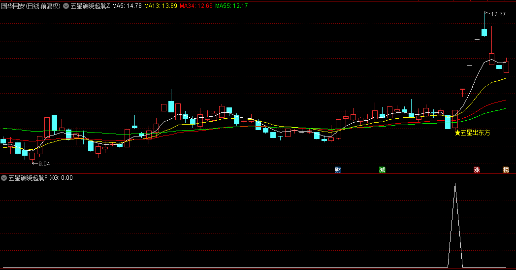 主图指标,它巧妙地融合了四条关键均线——5日、13日、34日及55日均价线。
