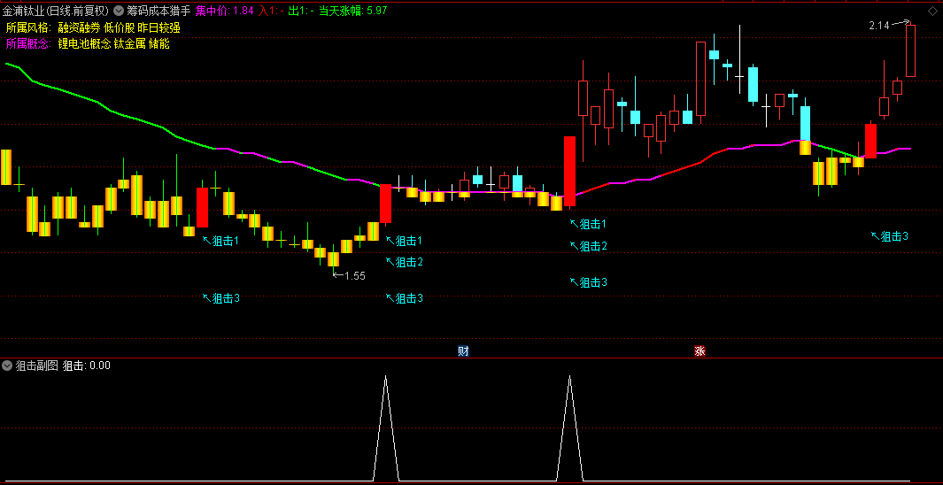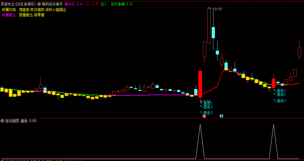 并且当天涨幅超过5%,以一根阳线的姿态宣告其力量的回归时,便是我们发出狙击信号的最佳时机。