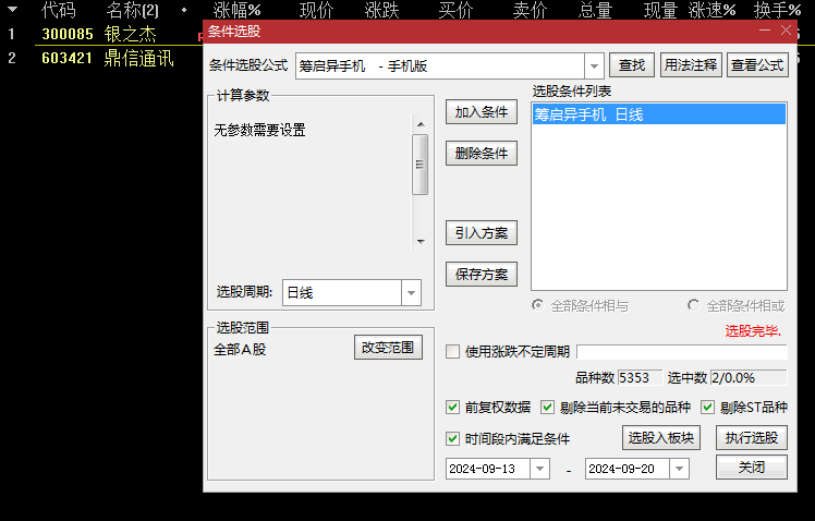跨平台适用:无论是电脑端的通达信软件,还是手机端的应用,我们的“筹码风云”选股指标都已进行了全面测试,确保您在任何设备上都能获得一致的使用体验。