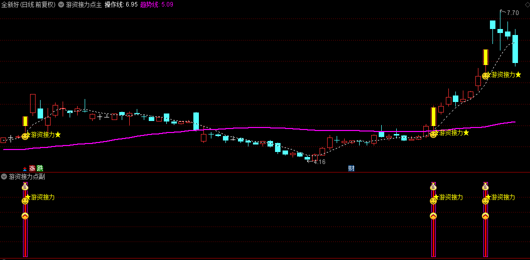 本指标就是通过研究游资机构接力原理编写,我希望借助这个指标可以帮你抓住每一个接力点。