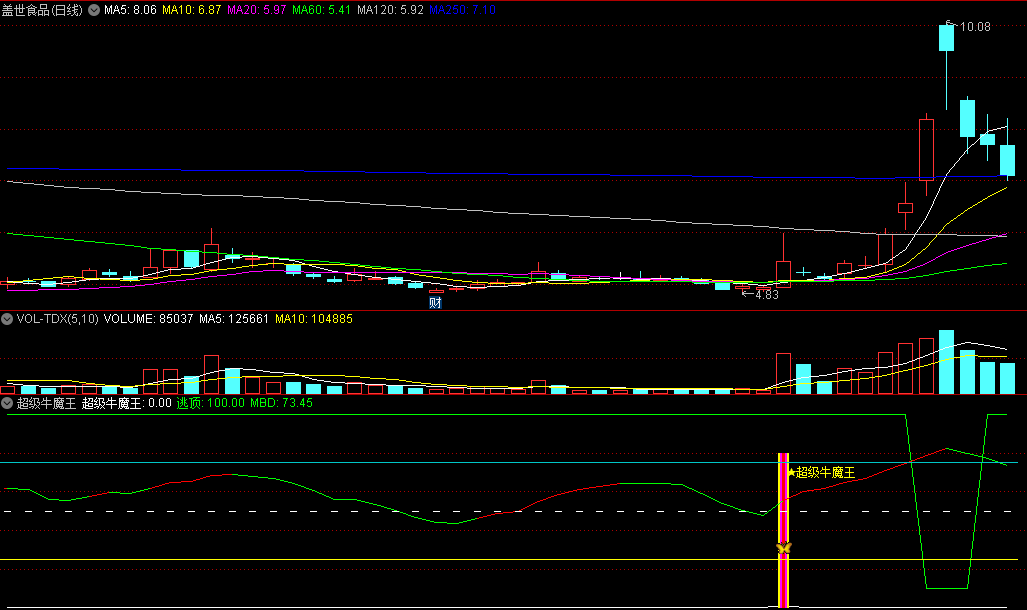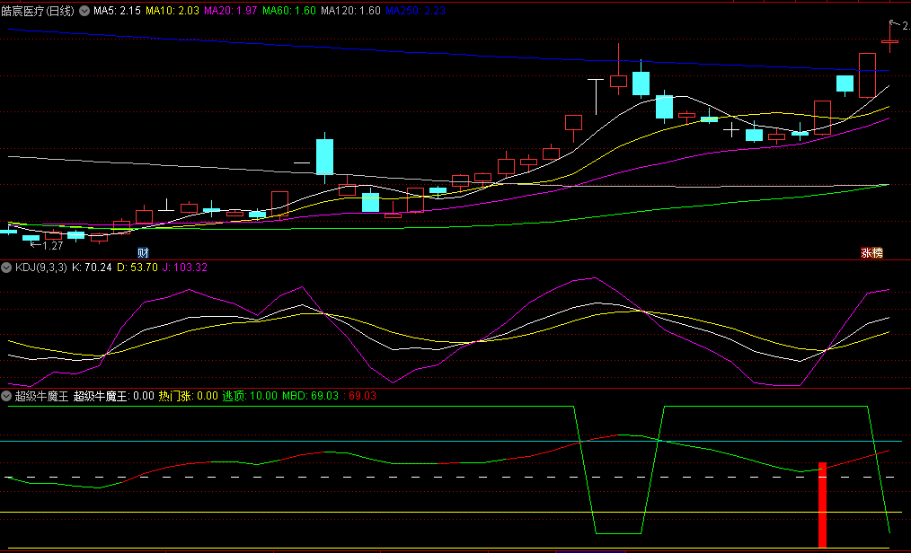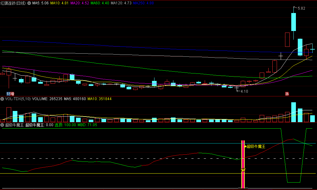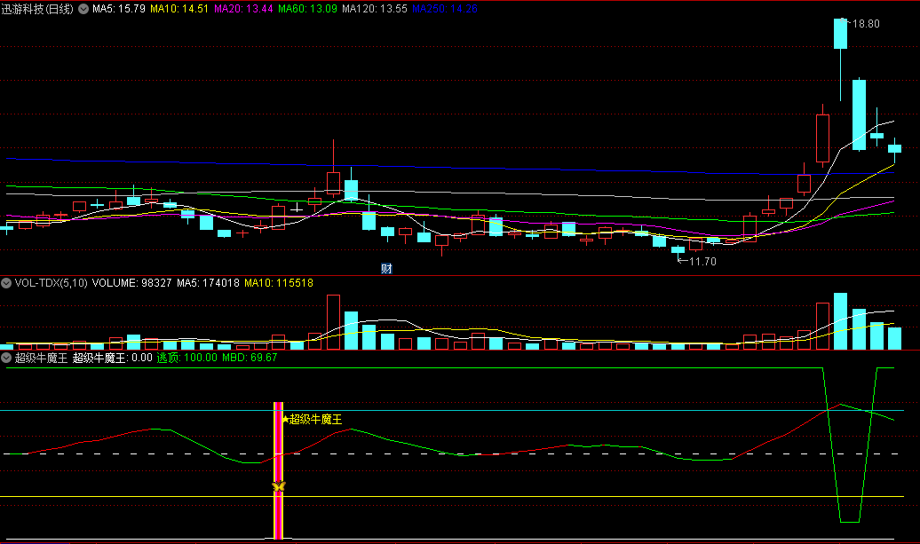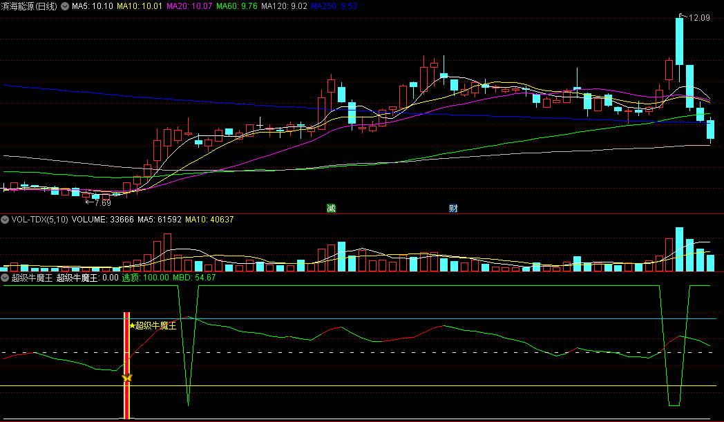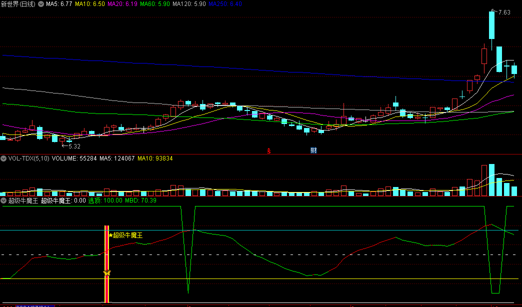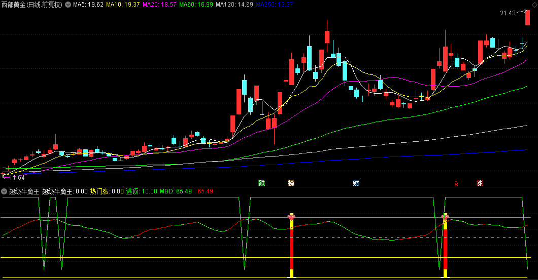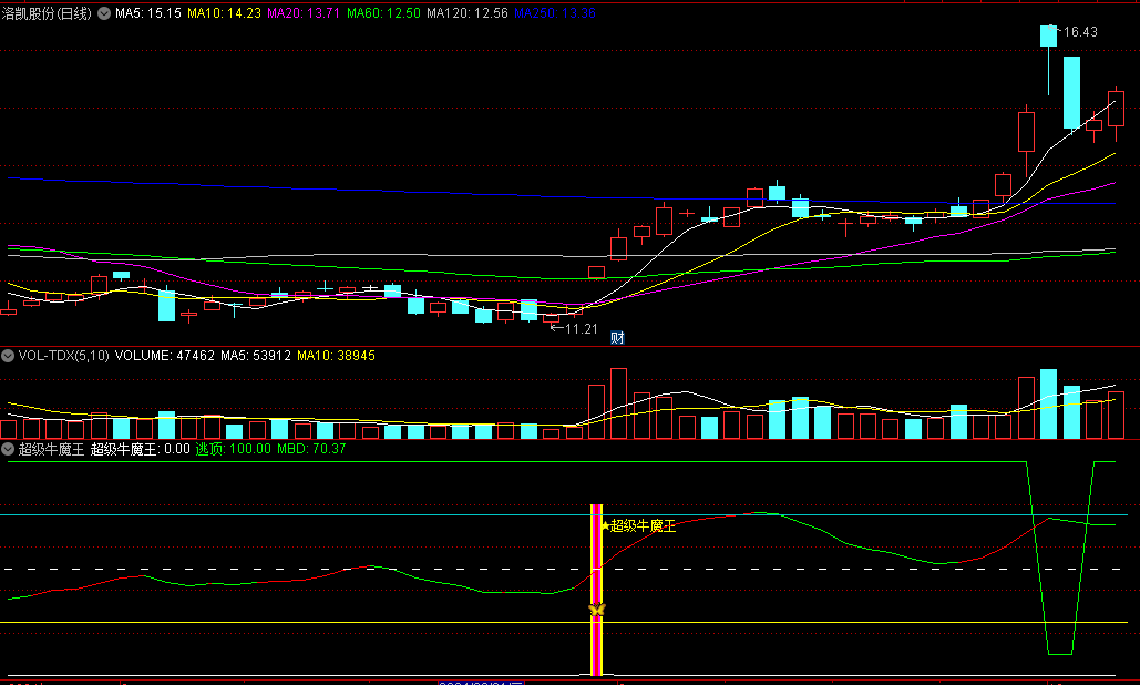 金钻改版【超级牛魔王】副图/选股指标,具备买入卖出两大精准点,捕捉牛股沸腾瞬间,把握高位获利点!