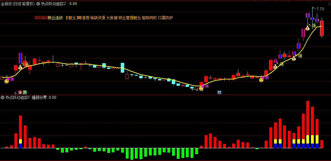 热点跃动追踪指标囊括了一主图、一副图以及两个选股指标,它们是从经典“季节捕捞”策略中汲取灵感并历经深度改良的结晶,专为锁定市场热点个股的启动先机而生。