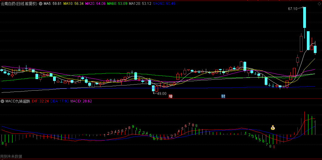 在MACD柱体的顶端,每当九转信号显现,都会配以清晰的数字标记,让投资者能够直观捕捉到这一关键时刻。