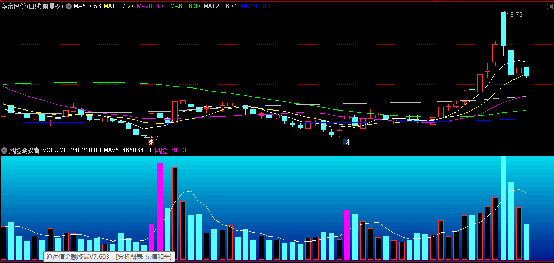 尤为值得一提的是,当紫色的量柱跃然于屏幕之上,那意味着当天成交量出现了显著的放大,