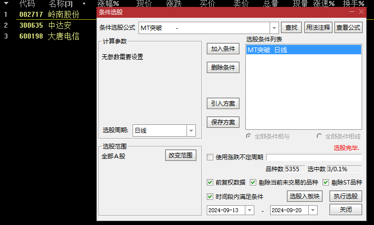 原创【MT突破】副图/选股指标,比很多金钻指标更好的选股公式,出票少,成功率88%