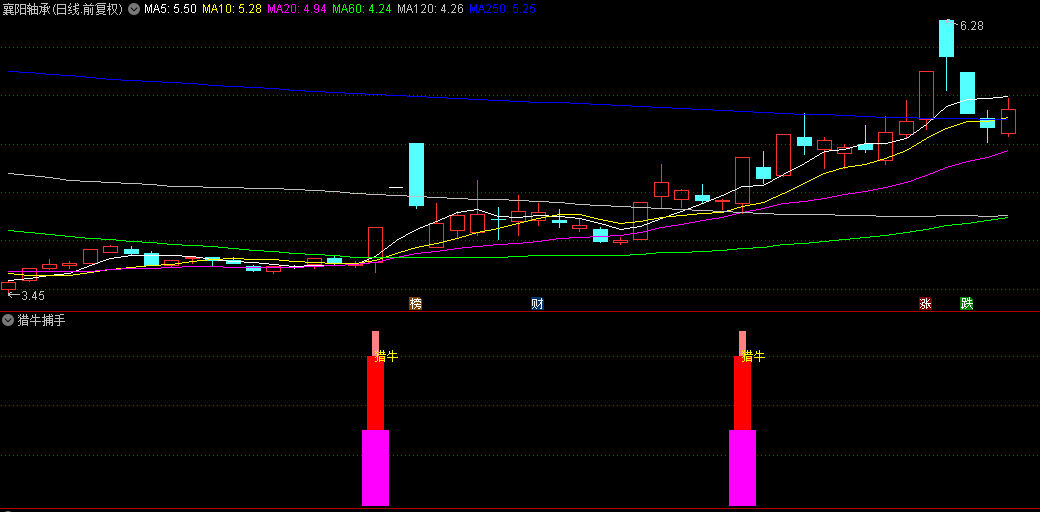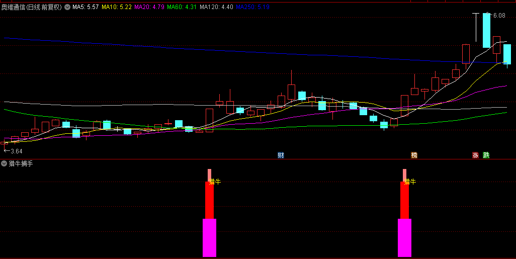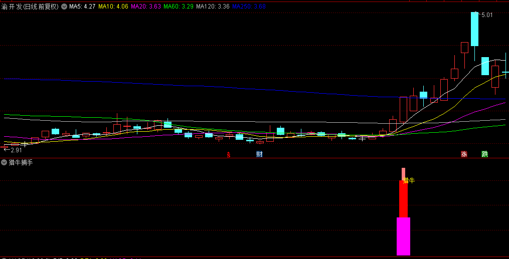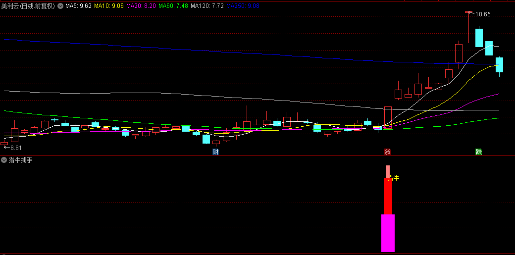一旦"猎牛捕手"捕捉到绝佳时机,屏幕上将跃动起醒目的红色轨迹,并配以鲜明的"猎牛"标识,直观揭示市场中的强势机遇。