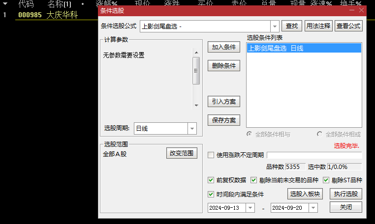 在午盘收市或收盘前十分钟,我们开始筛选潜力股;