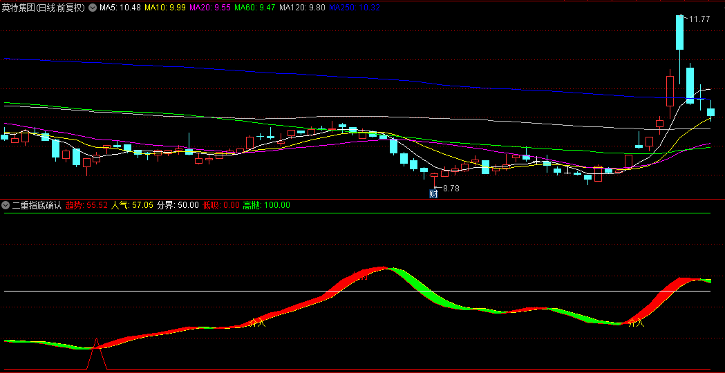 此外,“二重指底确认”还融入了多空带趋势的判断功能。