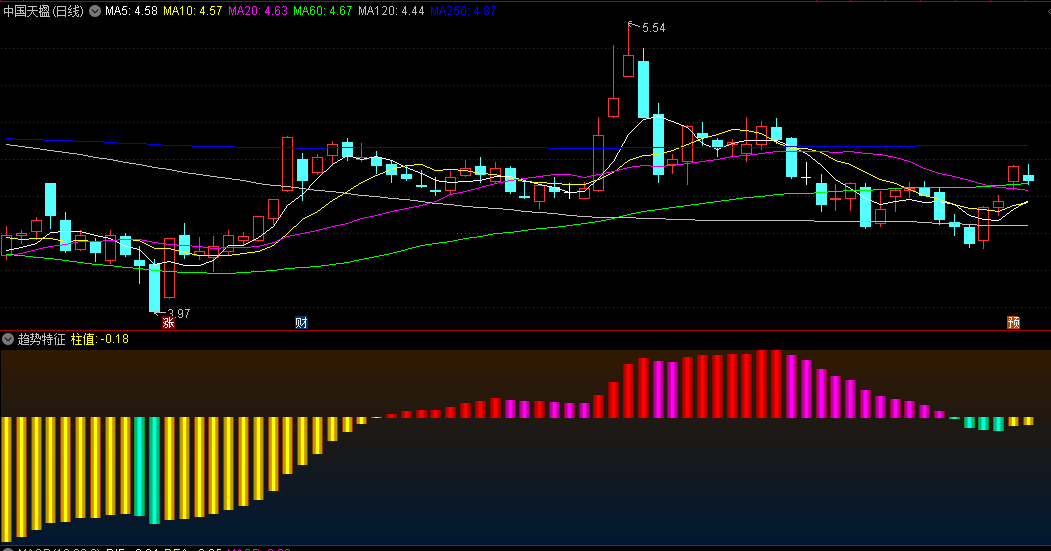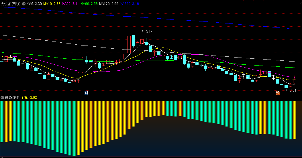 如果在观察期间,并没有出现明显的大的蓝色系色块,而且黄色柱体始终如一地存在,那么这往往预示着该股票在后续阶段有持续拉升的可能。