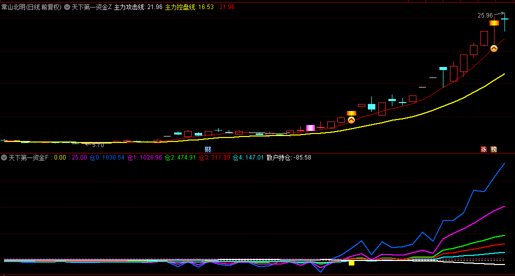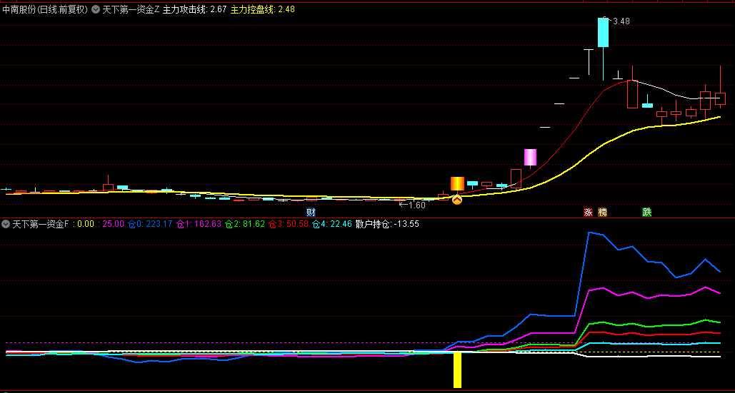它巧妙地运用从仓0至仓4的彩色线条,直观展现不同时间段内的资金净流动情况。
