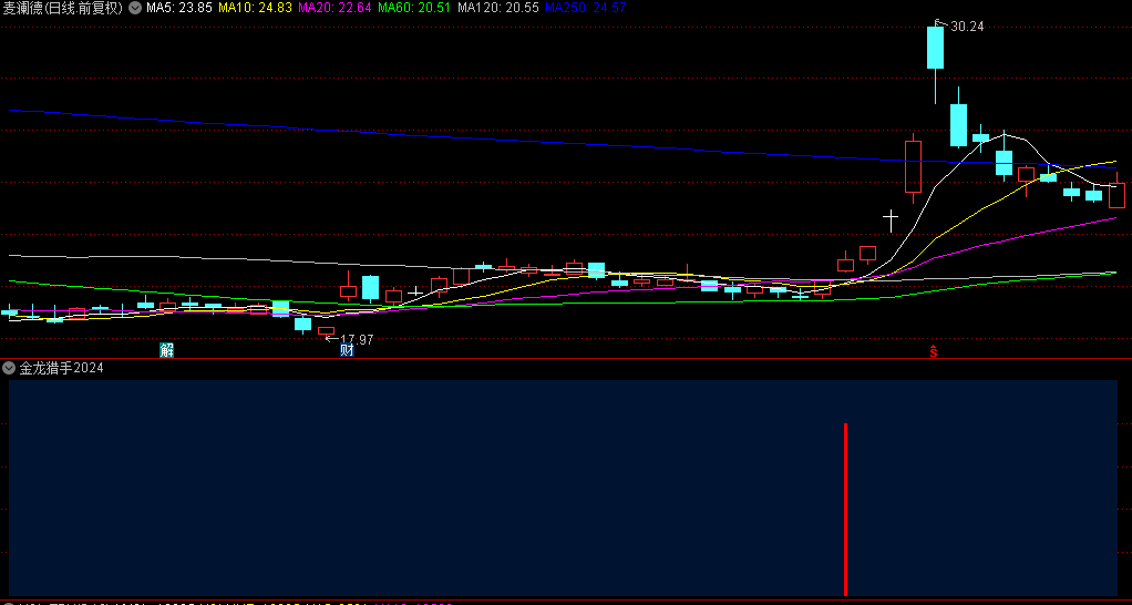 总体而言,“金龙猎手”选股指标的操作思路是:在股价高于预警信号价时,及时减仓止盈并锁定利润;