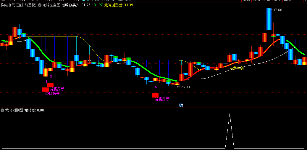 一、当主图上显现“龙吟剑”三字时,这便是您入场的号角!此标志预示着个股或已冲破前期的重重阻力,往往是主力资金完成洗盘后的转折时刻,也即拉升行情的序章,预示着后续上涨空间的广阔。