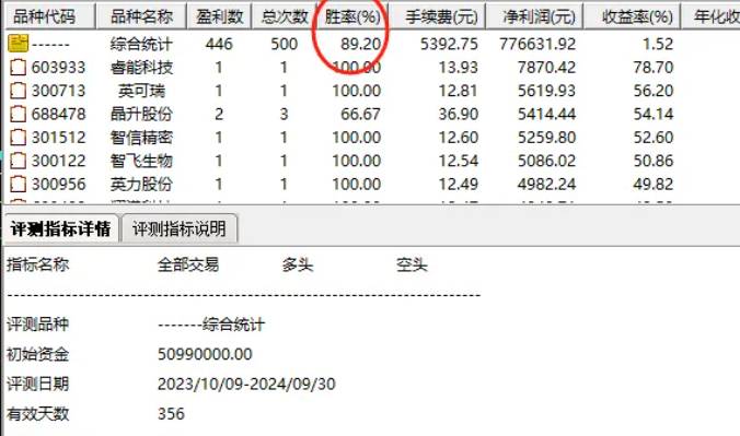 而在刚刚过去的2023至2024年度评测中,该策略更是大放异彩,胜率接近九成,让人眼前一亮。