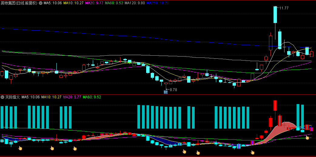 一旦金手指显现,即意味着市场正步入亢进态势,此时,彩柱身披红妆,犹如烽火连天,向投资者宣告着市场的利好阶段已至。