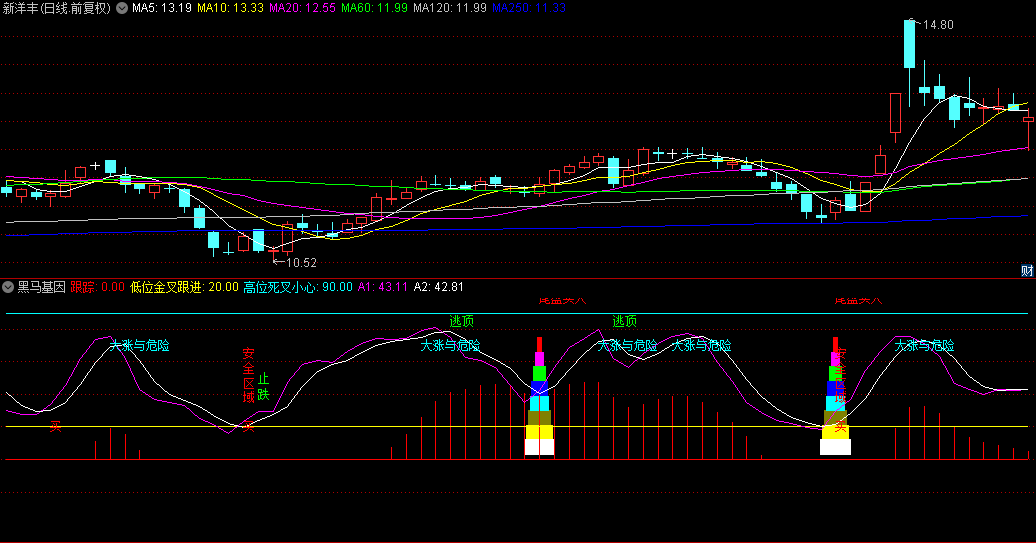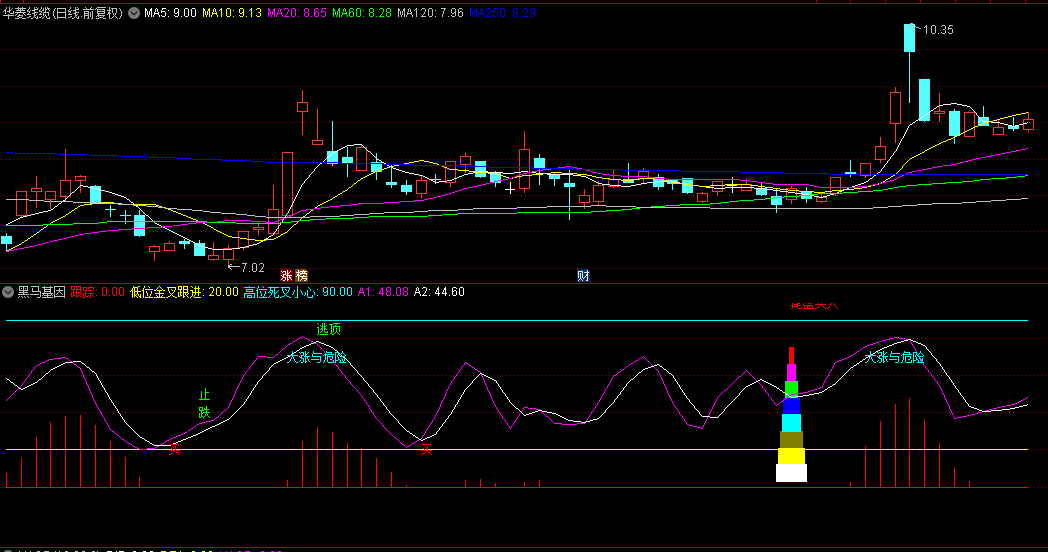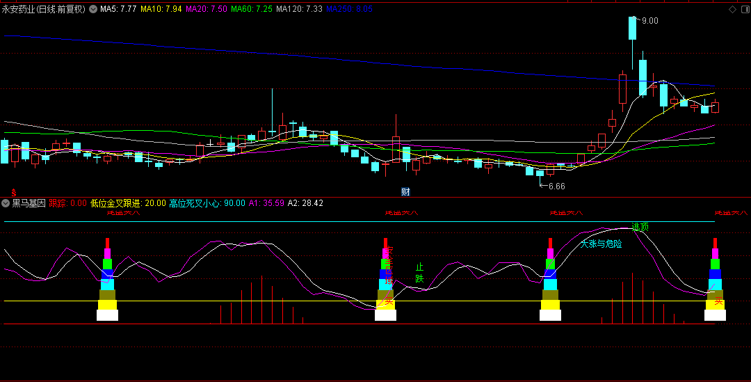 来自自己实战总结的一个指标,希望大家喜欢,识别黑马基因,一旦发现具备黑马特则的强势股则发出尾盘买入信号!