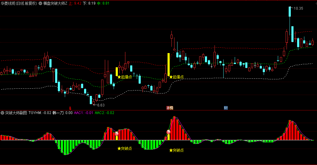 副图结合了量能和MACD,旨在提高反转和突破的成功率。
