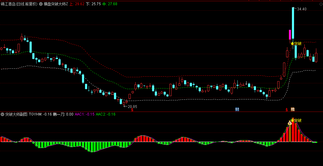突破信号:待主图发出突破信号,同时副图也显示突破确认时,再考虑入场。
