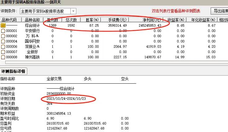 经过一年的实战回测,“一剑开天”策略展现出了令人瞩目的盈利能力。