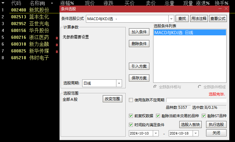 这是一项将MACD与KDJ巧妙融合的指标工具,它集主副图展示与选股功能于一体,为投资者提供了更为全面的市场分析视角。副图选股不含未来函数!