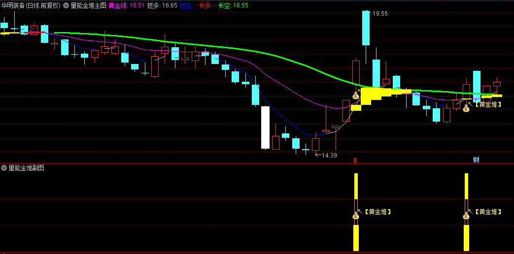【量能金堆】套装指标包含主/副图+选股指标。指标技术含量高,使用简单,下面做了简单说明。供股友们参考!