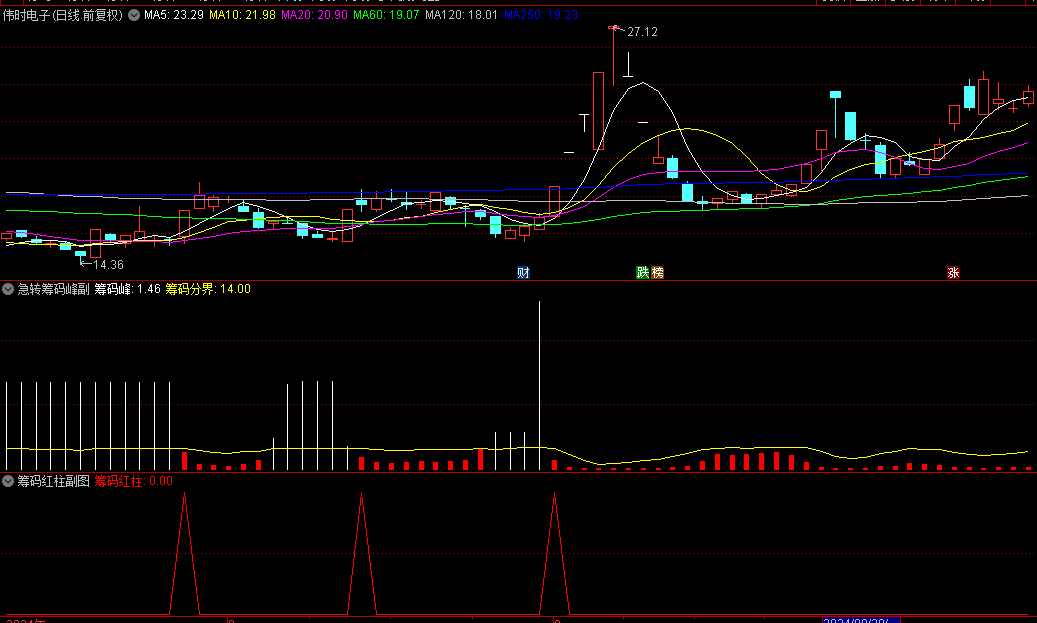 【急转筹码峰】副图/选股指标,实战价值极高,适用于中线或长线操作投资者,专抓长线大牛!