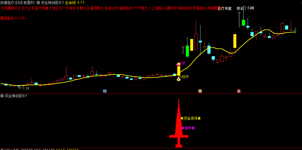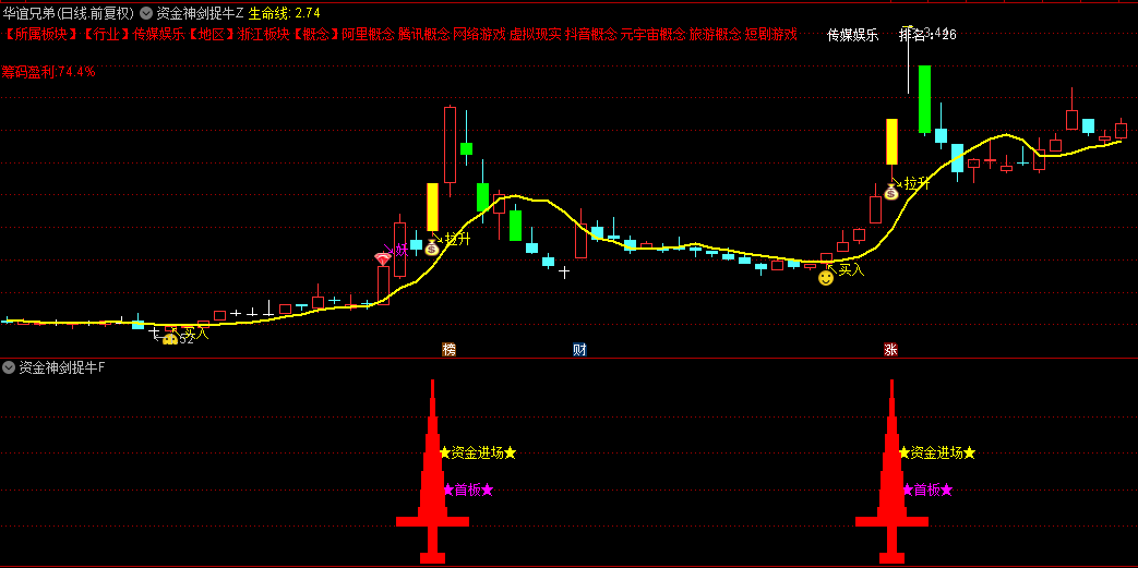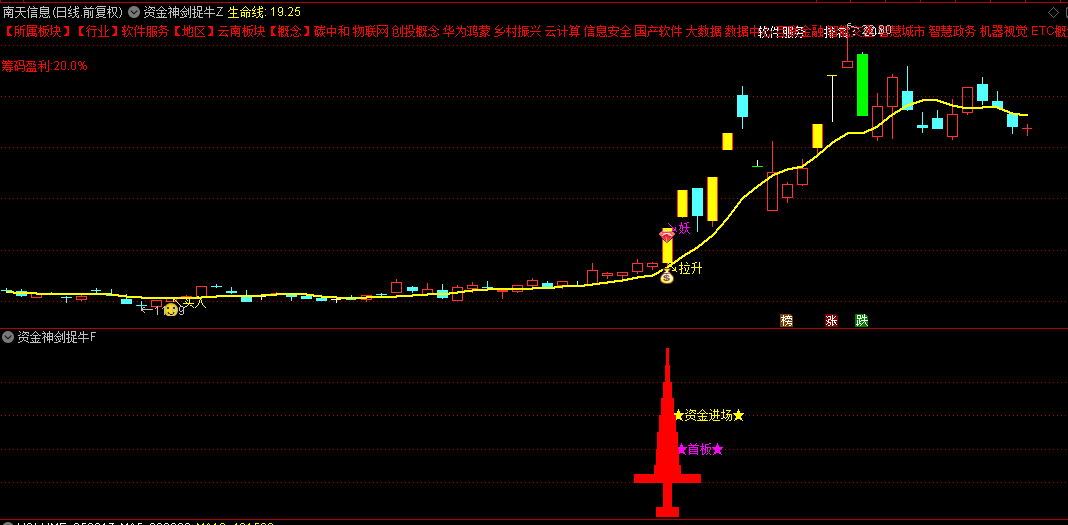 今日,向您隆重介绍一套独到的指标组合——“资金神剑捉牛”系统,它巧妙融合了资金流向的深度剖析、庄家操控盘的精妙洞察、精确无误的买卖时机提示以及盈利筹码分布的敏锐捕捉等多重信息,旨在为您的股市征途点亮一盏明灯,助力您精准锁定并擒获那些股市中的“超级黑马”。