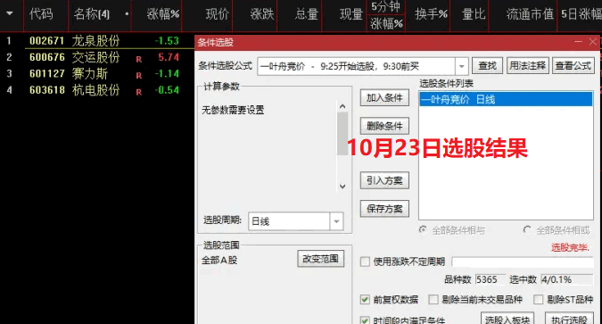 使用前,请确保开盘前日线数据已更新,以保障竞价选股的准确性。