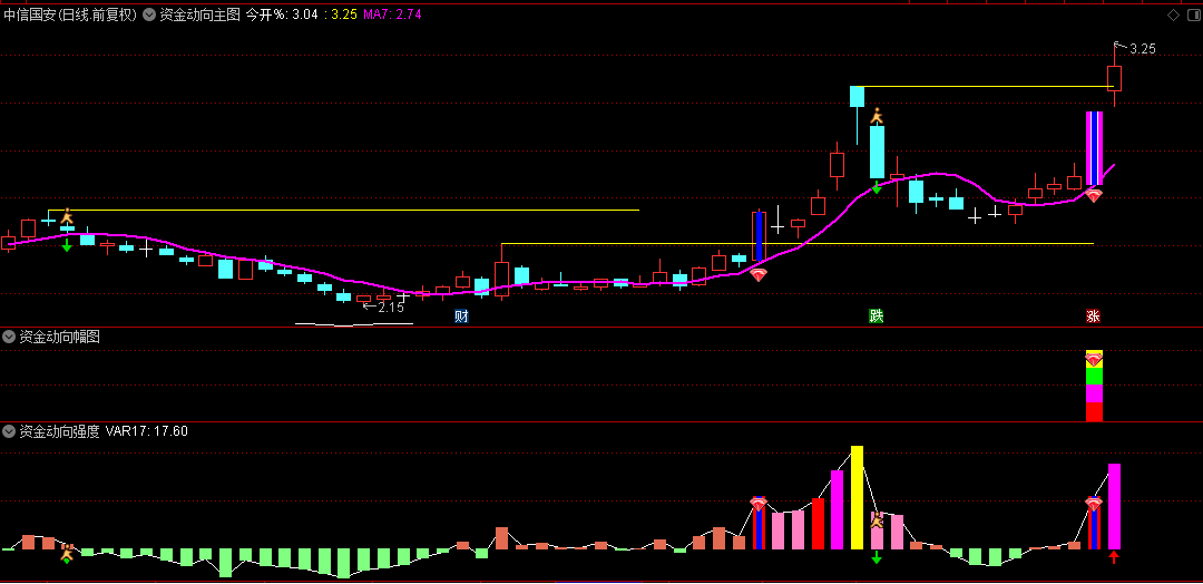 1、预警的票是,资金强度比一日大于6.5以上,同时股价涨幅7%以上;