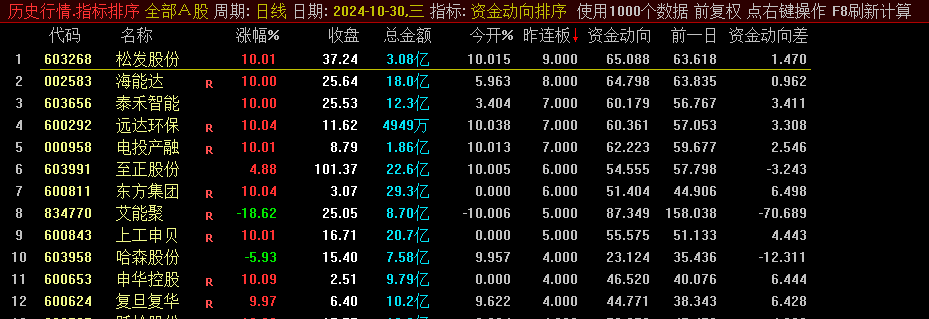 4、关注排序结果的前三名,重点第一支股票,当天涨停概率大!