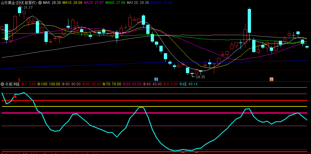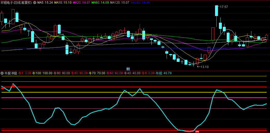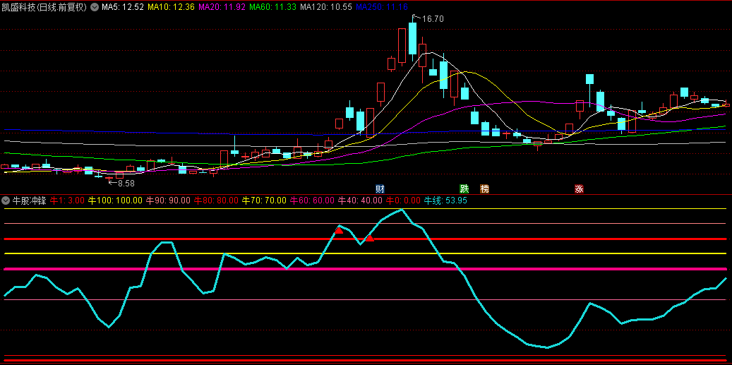 当指标中的牛线突破80红线时,它便进入了我们的视线。