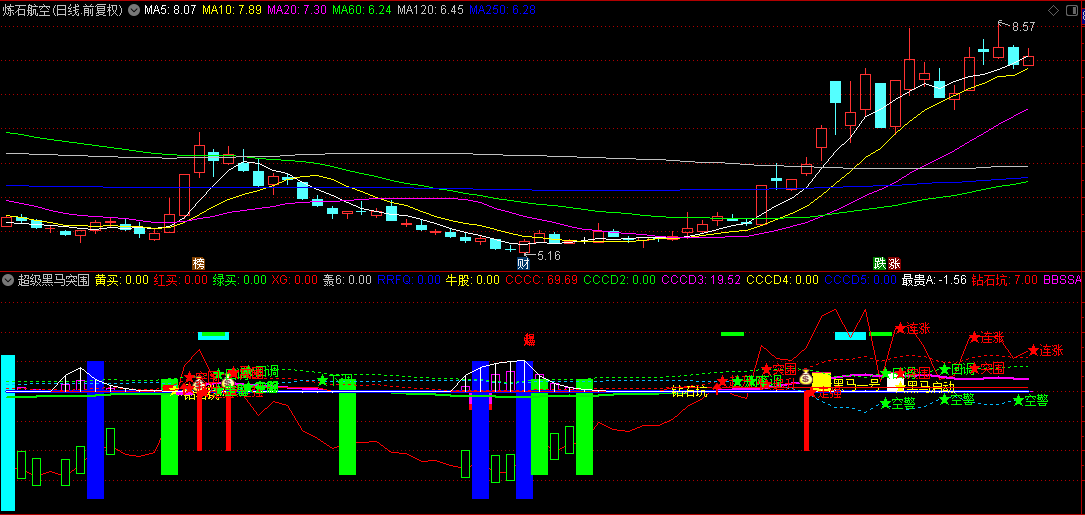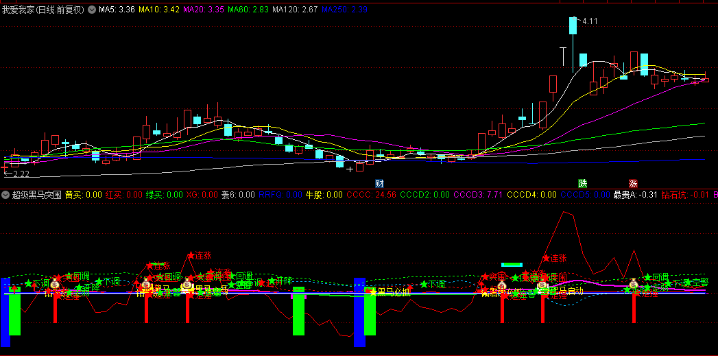 【超级黑马突围】副图指标,潜力股突围辅助分析,明确突围时抓住介入良机!