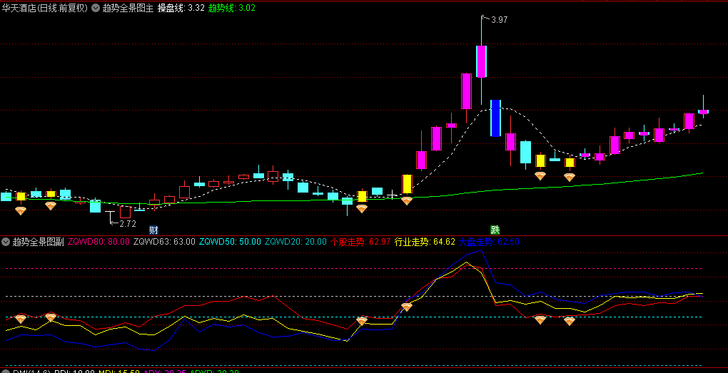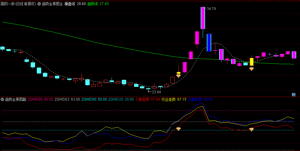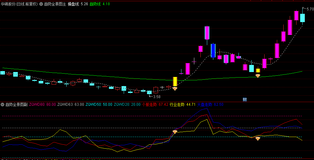 「全景趋势图」这一指标,为我们揭示了个股、行业及大盘三个维度的市场动态,以一幅全面的市场画卷展现在我们面前。无未来函数!