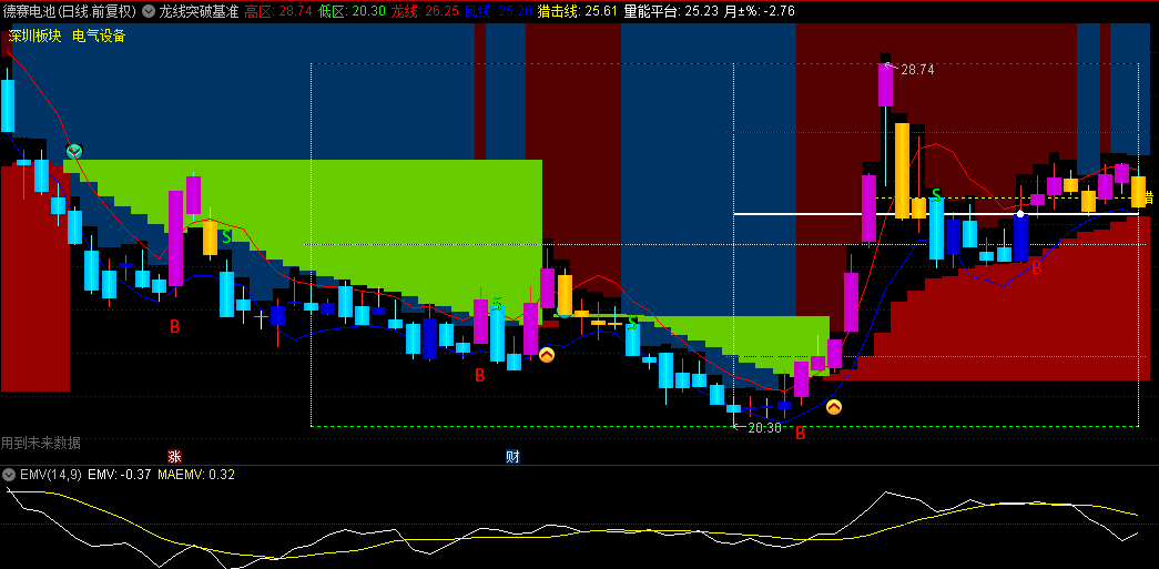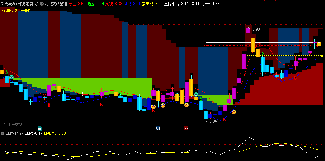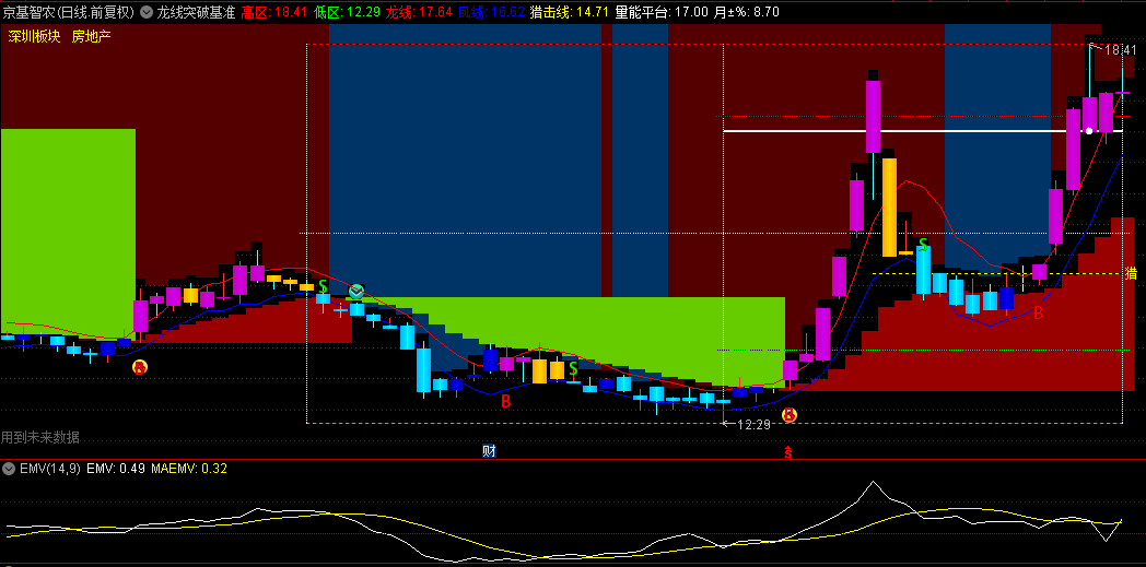 比较容易识别的趋势指标,低位时突破量能平台,就给出橙色向上箭头图标!
