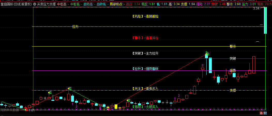 【买卖压力支撑】主图指标——一个专为操盘手量身打造的辅助利器,其图形设计巧妙,让人一目了然,买卖决策的甜蜜点跃然图上。
