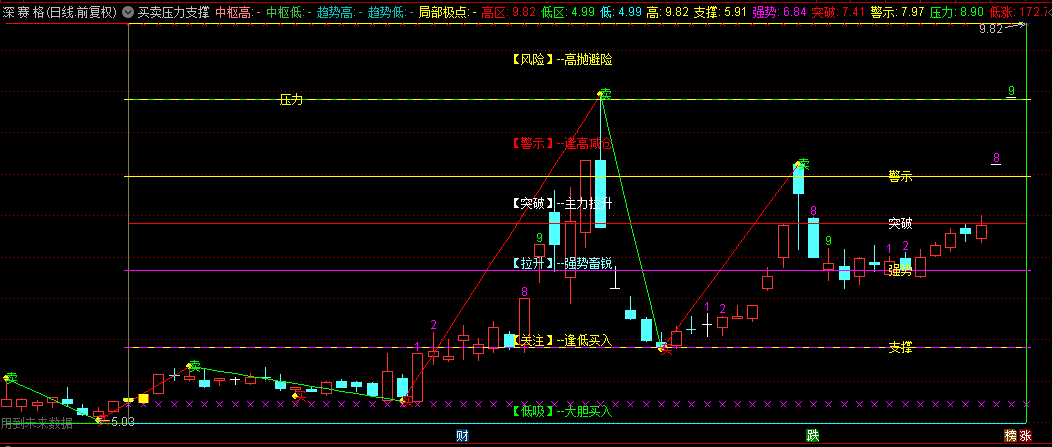 【买卖压力支撑】主图指标,标注每个位置的细节支撑位和压力位,判断上升+下降+横盘趋势