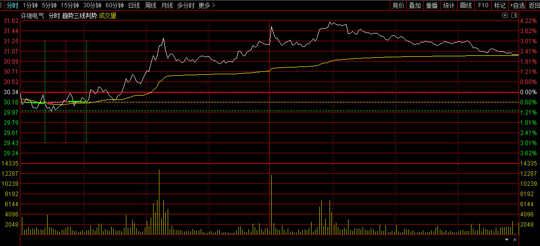 【趋势三线判势】分时主图指标,适用于开盘前选定的个股,通过分时走势精准把握入场时机