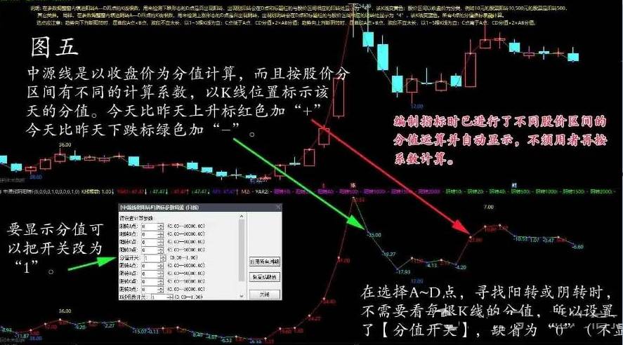 中源线是以收盘价为计算分值的依据,每天的收盘价连成线就是中源线,从股市语言就是MA1(1天的移动平均线)。