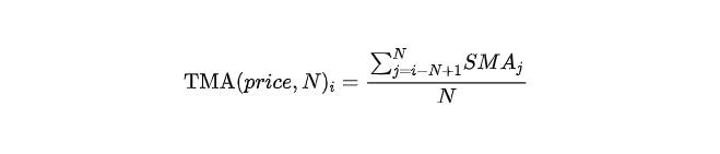 结果与三角移动平均线(TriMA) 非常相似,但计算起来要困难得多。