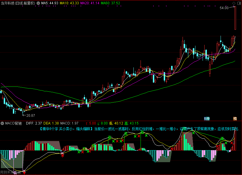 解盘A:=IF(解盘1=1,'【精华8个字 买小卖小,缩头缩脚】 当股价一波比一波高时,反而红柱的堆,