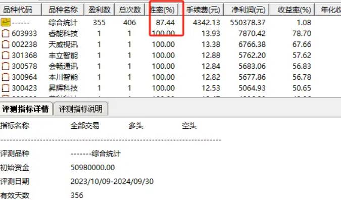 持股周期10天,胜率:87%。正向年收益55万;共出手406次。