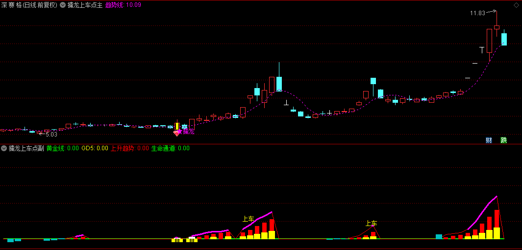 【擒龙上车点】主图/副图指标,狙击龙头,主图和副图配合出现信号就上车!