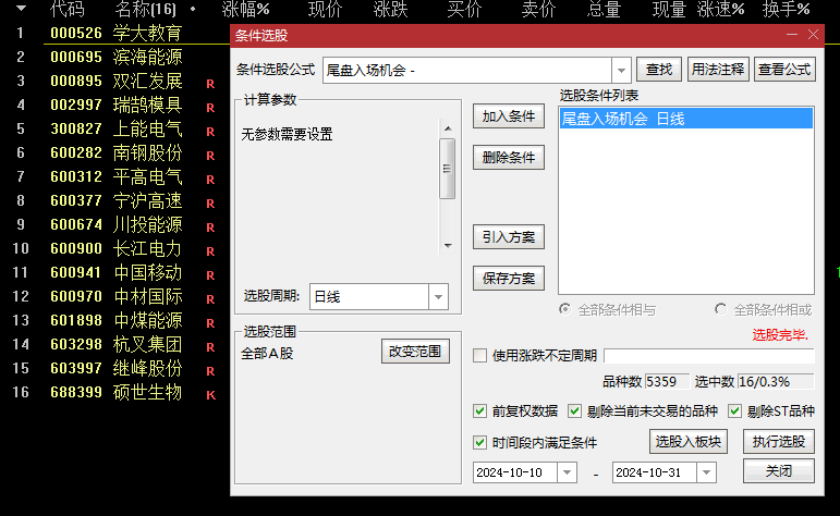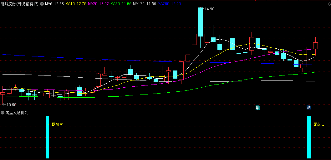 通达信【尾盘入场机会】副图+选股指标,低位起涨,第二天冲高获利了结