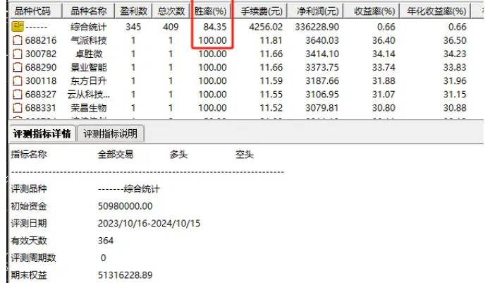 期间,该策略共进行了409次精准出击,每一次都彰显了对市场趋势的敏锐捕捉与快速响应能力。