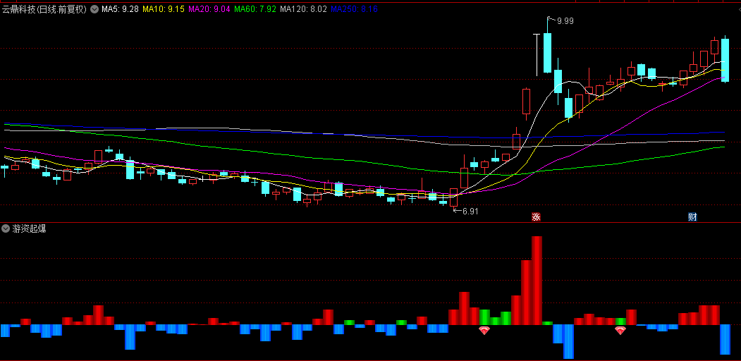 游资起爆幅图指标,是通过计算股价的变动来预测资金的状况,实际上并不是完整的真实的资金动向,只是通过股价变动以及股价所处位置做出的推测;